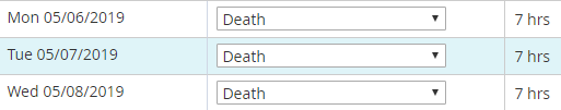 ETA II: Related to colleagues being alive! My employee's relative died suddenly over the weekend, so I needed to put her in for bereavement leave. Apparently, our system does not have a 'bereavement' category, but a 'death' one, so she is marked as 'Death' for yesterday, today and tomorrow. She's dead, but only for the 3 days covered by payroll policy and she'll get better tomorrow night! Someone did not think that naming system through well enough. Screenshot: